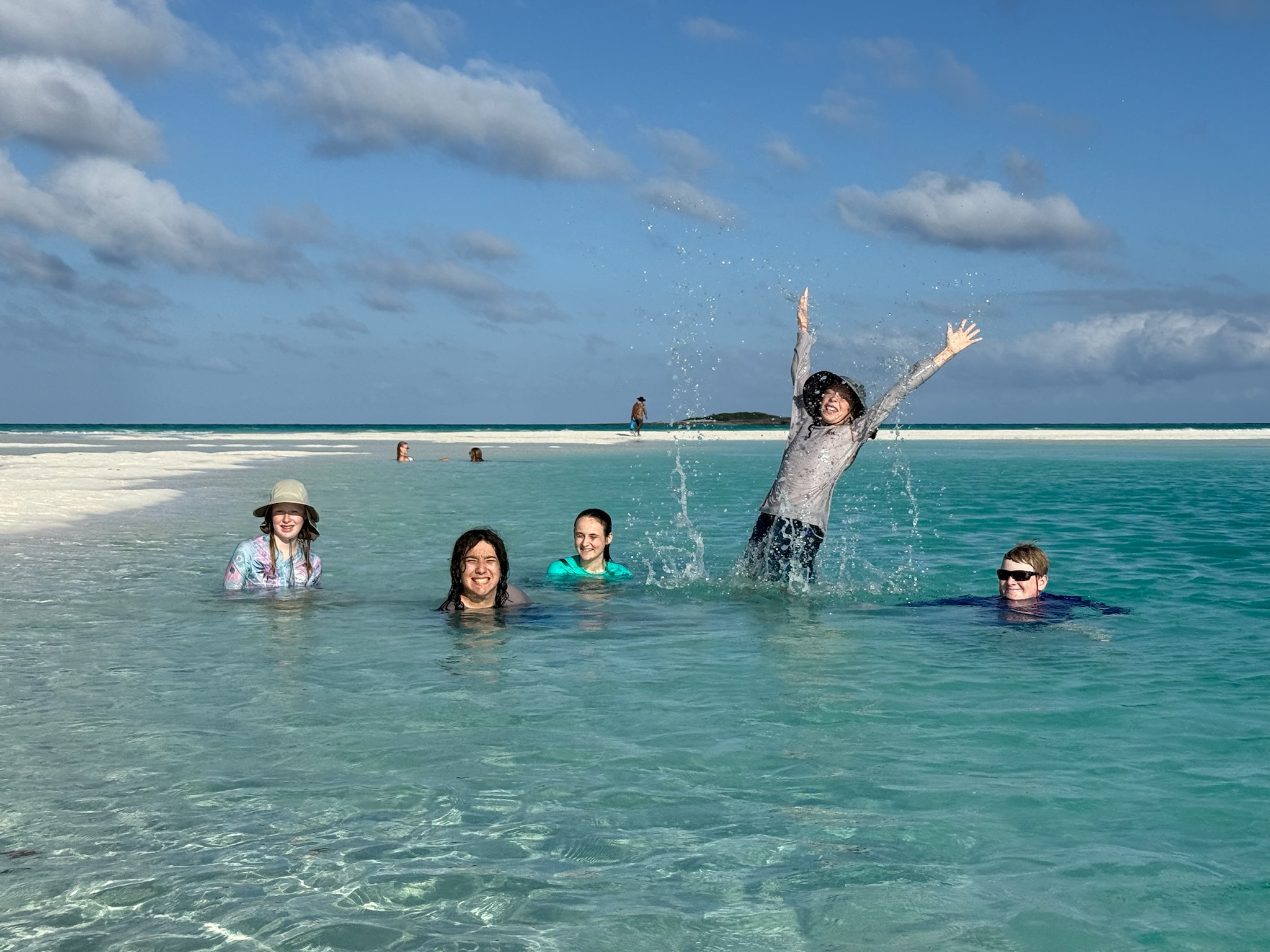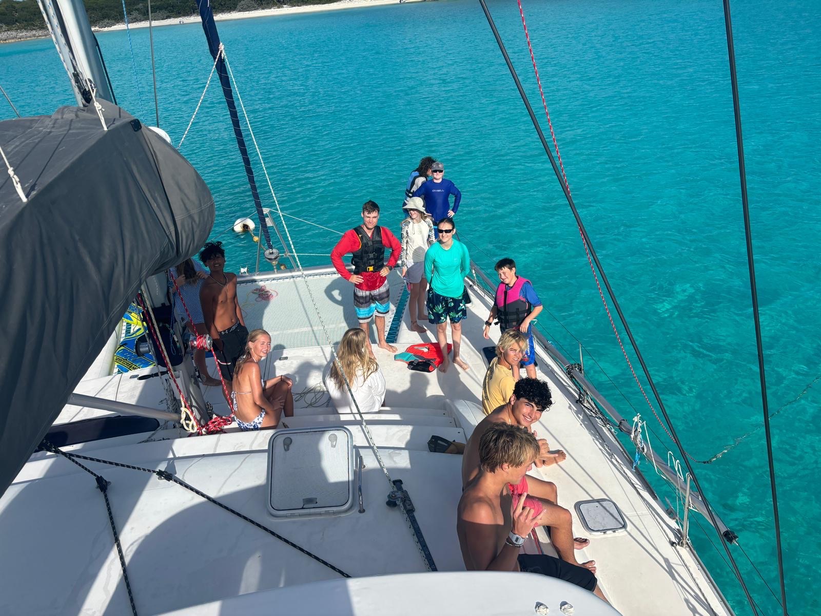On Wednesday, we moved to Warderick Wells. Mom and Dad went on a hike while I went over to Zimovia. They did a really cool thing where they attached a super long line to their mast, then attached the other end to their dinghy. People would grab on to the line and they would start the dinghy. The line would hoist you into the air and you would let go and plunge into the water. It was super fun! After that we went tubing, then played on the beach. In the evening, we did a candy cane hunt on the beach.