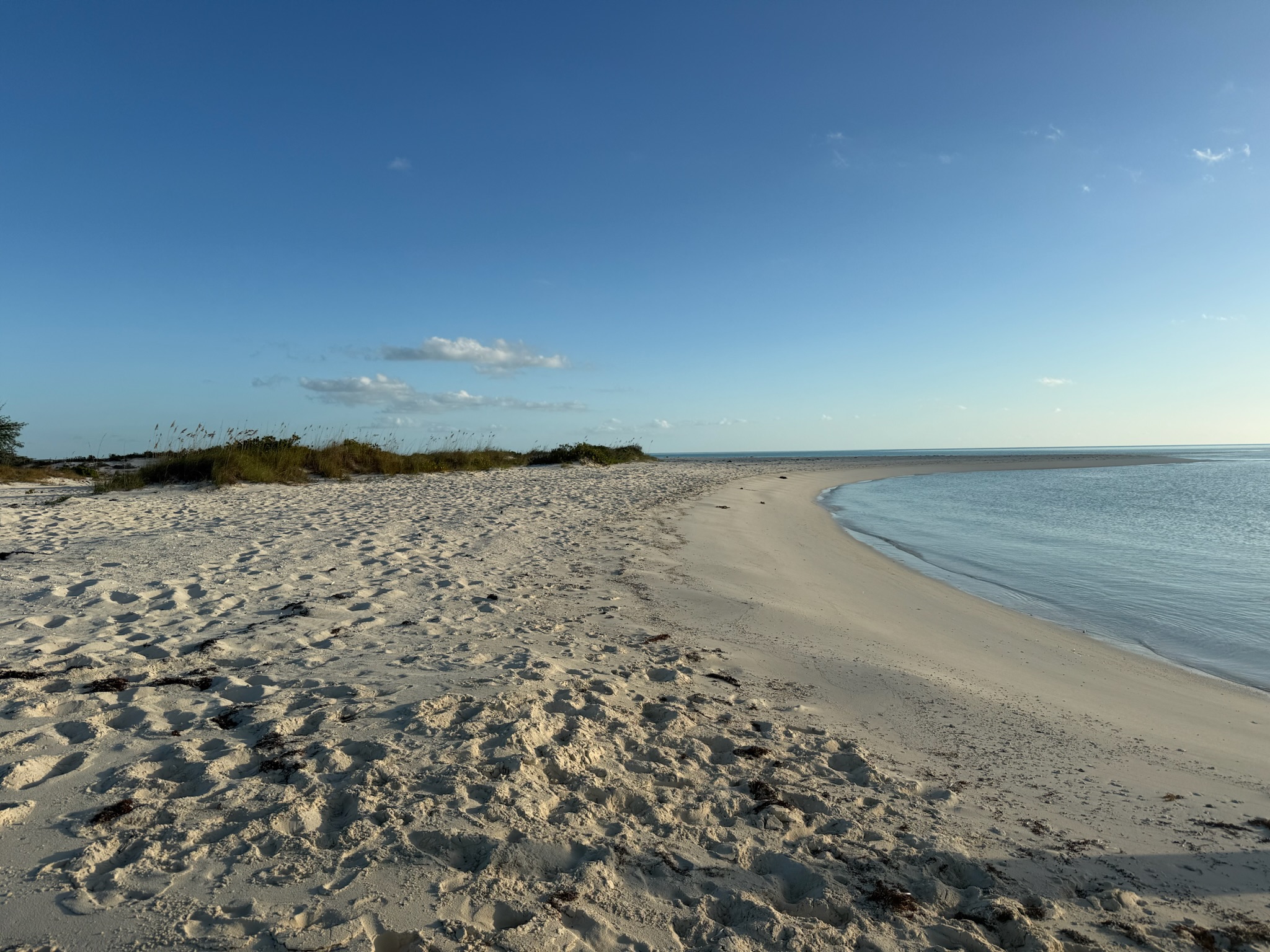 The sandbar had quite a bit of foliage, so it must not get fully submerged, even at high tide.