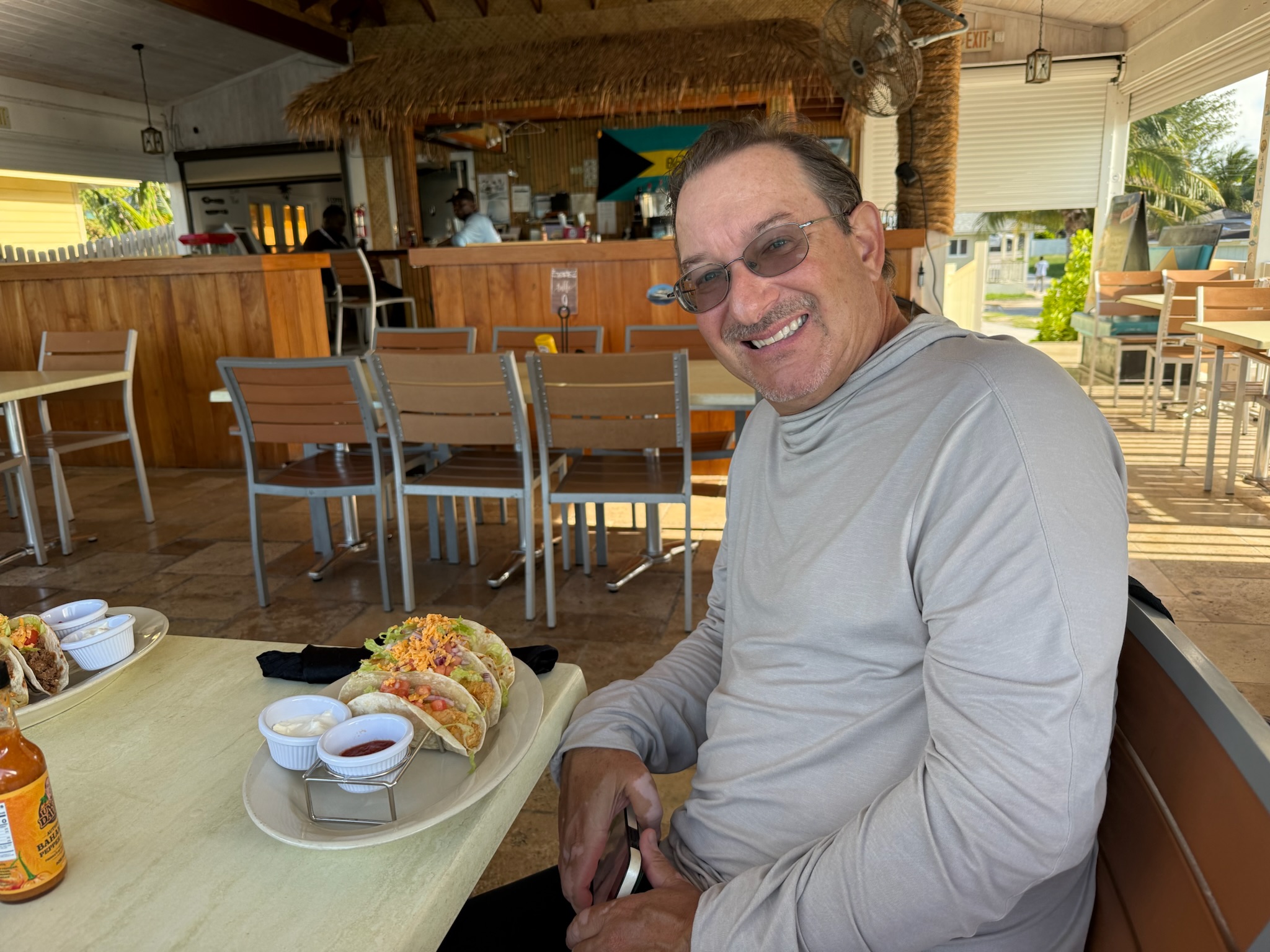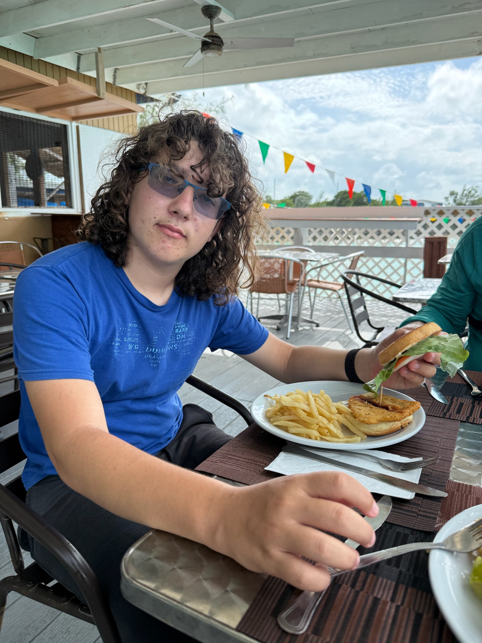 It was another windy day, with sustained 15-knots lasting all day. After school and morning chores, we went to shore. We stopped by the grocery store and stocked up on eggs and a few other things. We saw that Deshamon’s was open. When we went in, they said they only had a buffet today, there was no ordering individual meals until dinner time. Due to her allergy, she generally doesn’t eat at buffets, so we went to the yacht club for lunch.