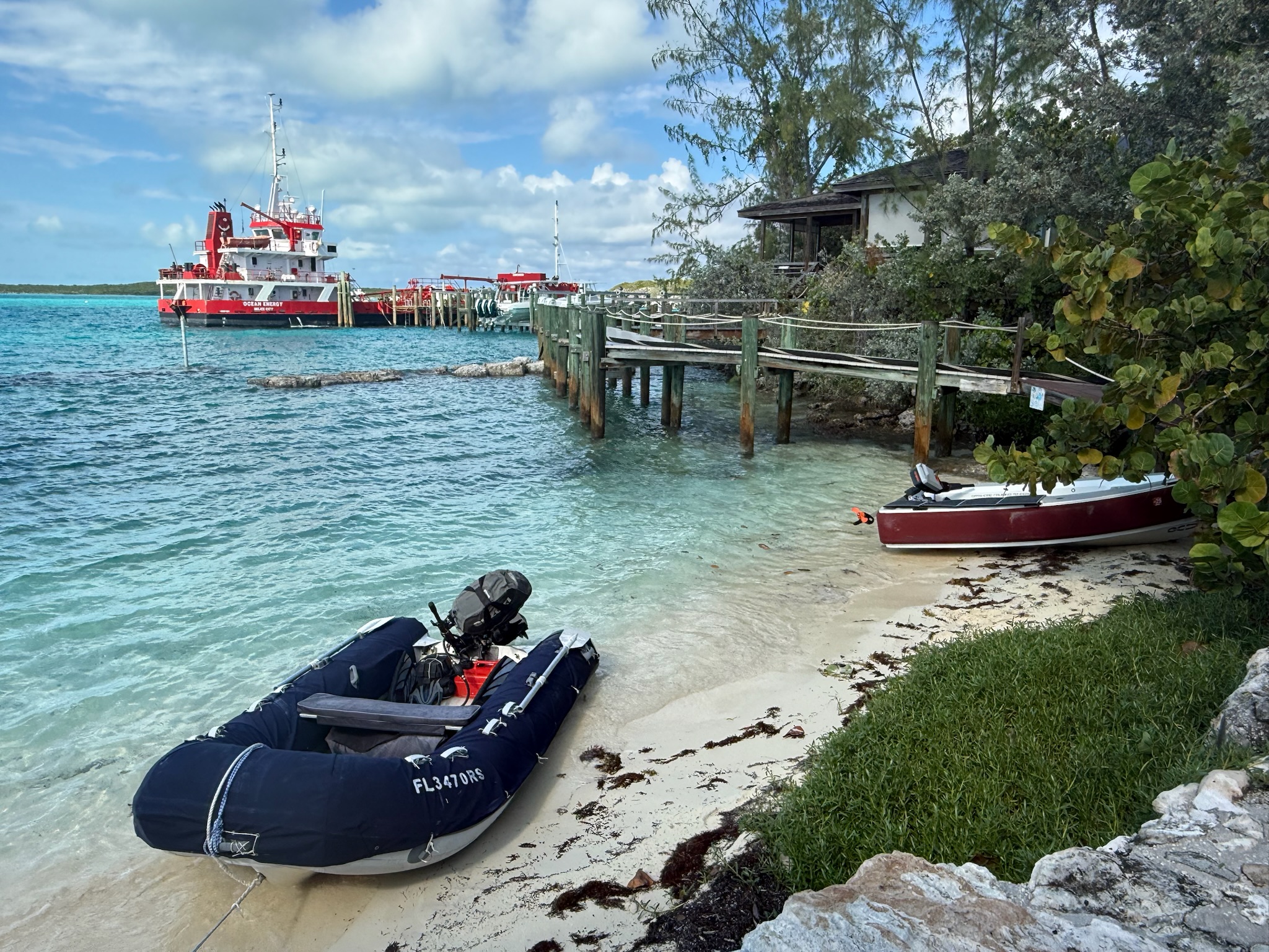 We needed to go to the grocery store. We decided to go to shore at 1130, figuring that would give us enough time to have lunch and do our grocery shopping before the current was too strong in either direction. We somehow made a big mistake in calculations. Going in, the current was still strong. We made slow forward progress while the battery power was quickly sucked down. Eric had intended to bring a spare battery for the dinghy to be safe, but when we were about halfway to shore, he realized he’d forgotten it. From there on out, he was really anxious about getting stranded. We made it to the yacht club dinghy area with no problems. It was high tide, and the sea wall was again underwater.