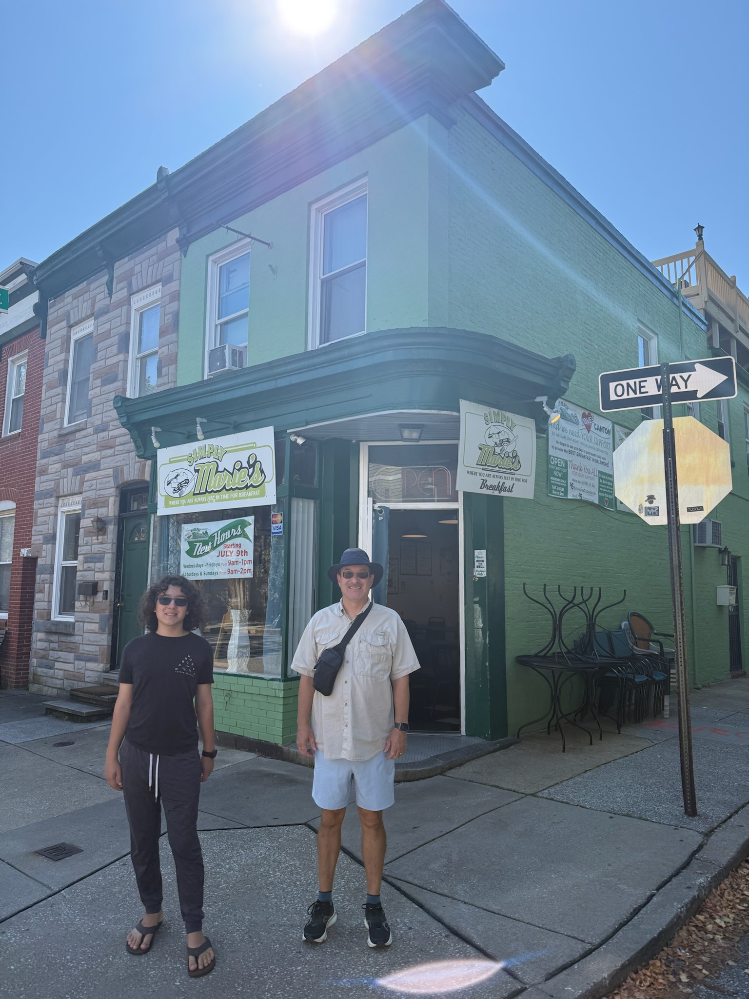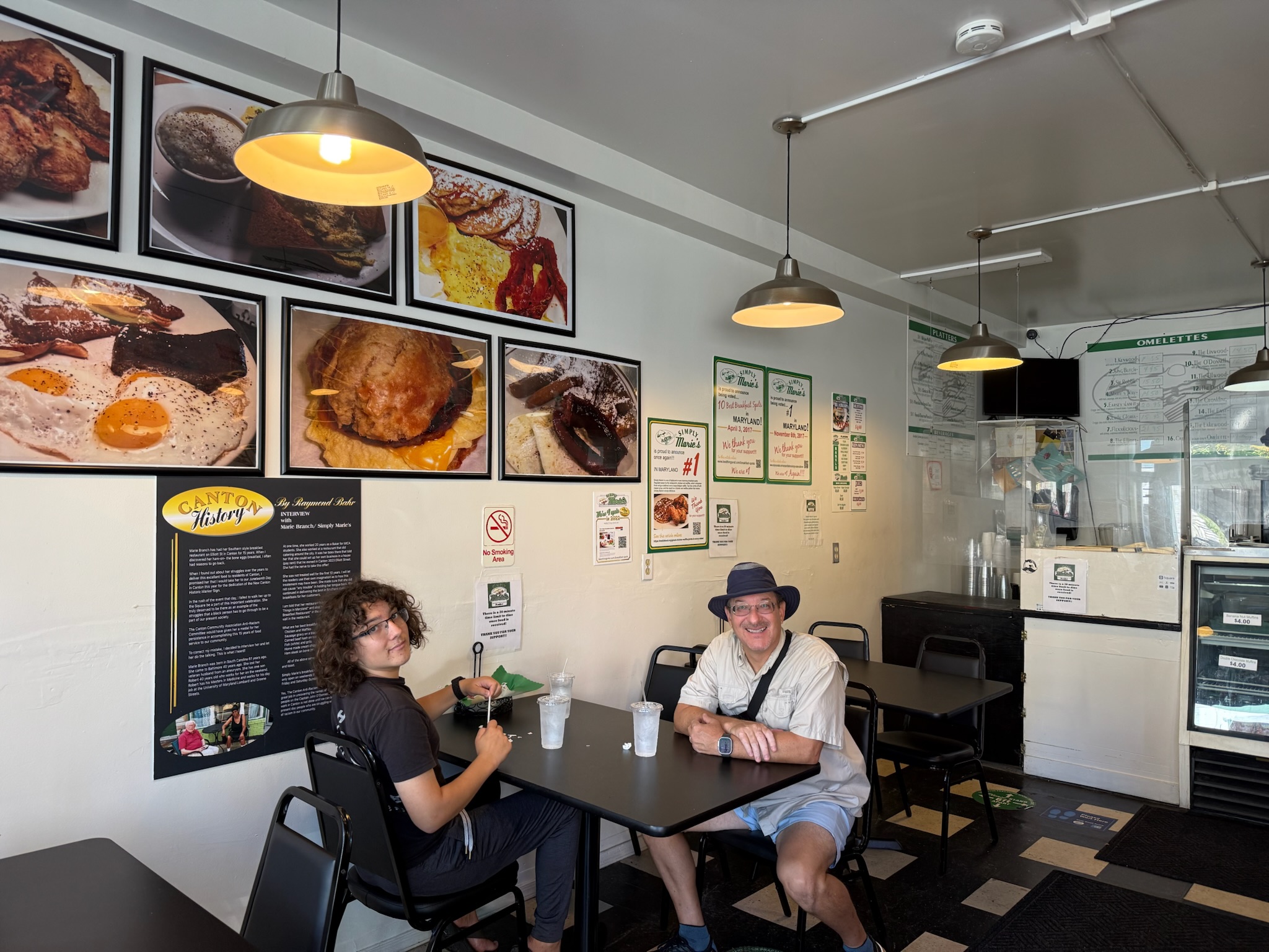 Before leaving for San Diego, we’d eaten all the fresh food aboard, so we had nothing for breakfast. We went to eat at an iconic Baltimorean southern restaurant called Simply Marie’s Breakfast Only, which was located in a tiny storefront near the Canton ferry stop. The tag line was no frills delicious homestyle breakfast, and our experience exactly match the tagline.