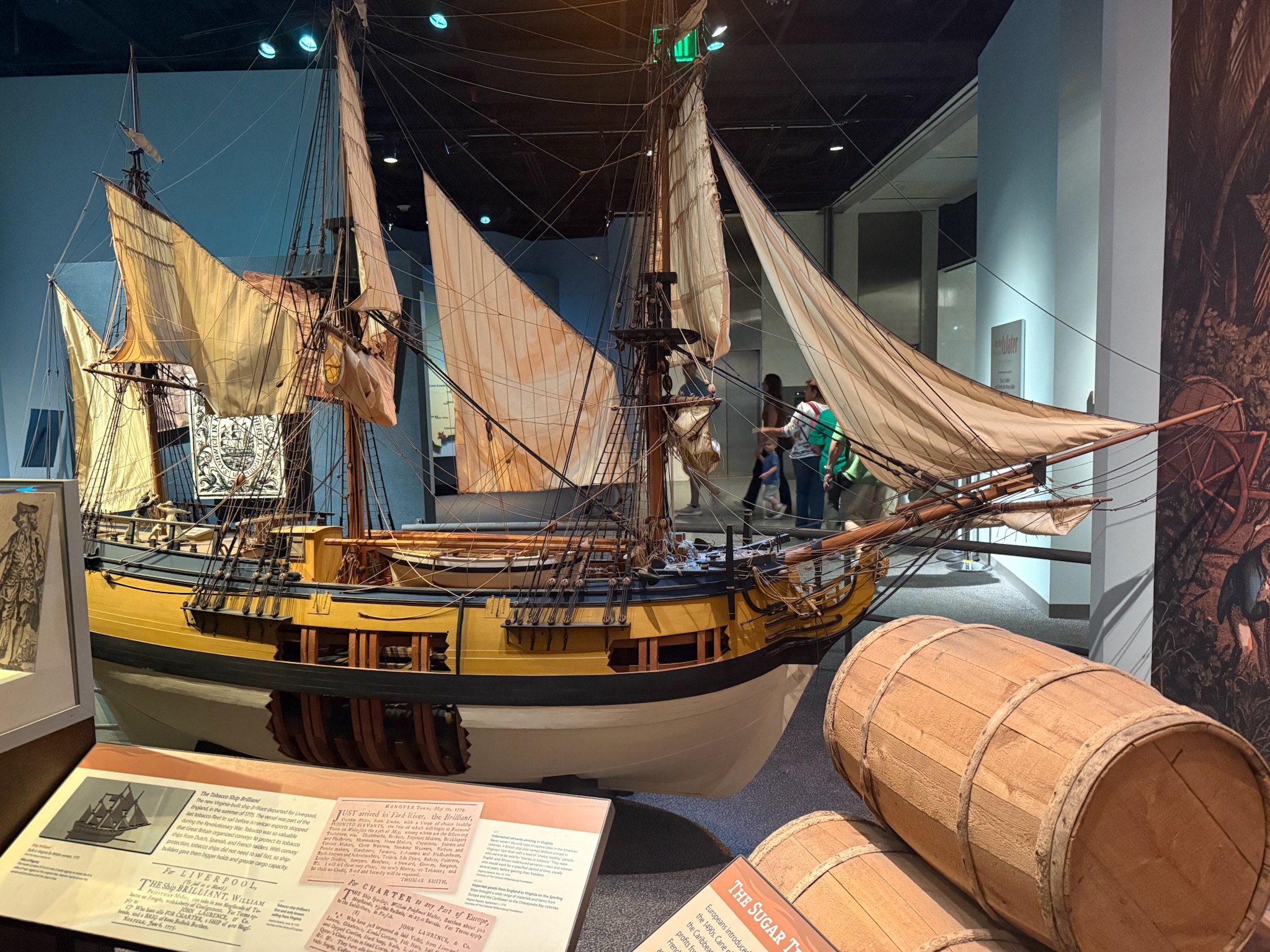 For the modern Maritime Industry, the signs talked about some of the different specializations, with a model of each type of specialty ship on display: Tankers for Liquid Natural Gas (LNG), oil tankers, cruise ships, fishing trawlers, container ships, and car carriers.